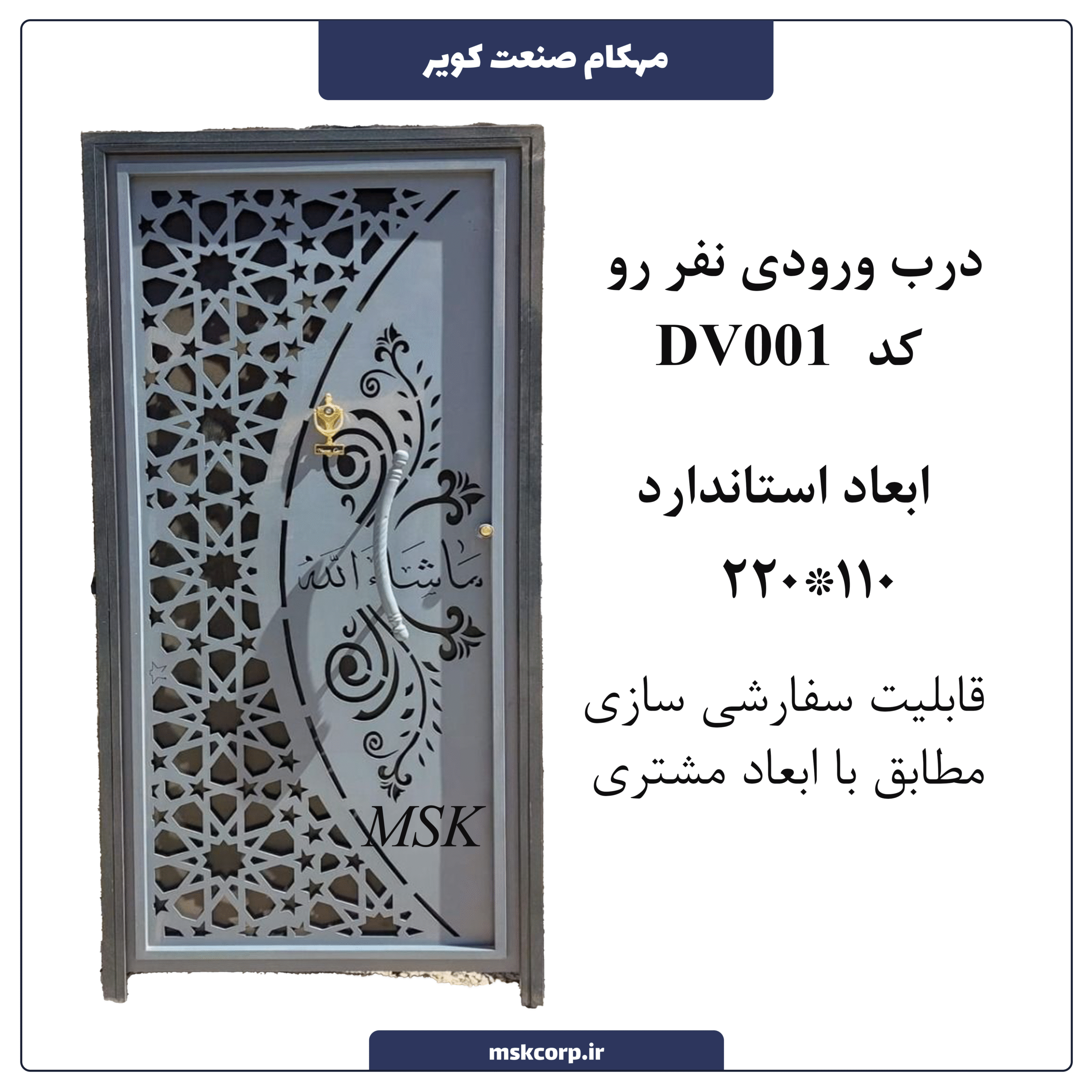 چهارچوب درب از قوطی 40*80 با ضخامت 2 میل قوطی استفاده شده در لنگه درب از قوطی 40*80 با ضخامت دو میل لولای درب : لولا سه پارچه بلند سایز 24  به صورت تقویت شده ورق مورد استفاده در درب ها از نوع ورق 3 میل فولادی جهت استحکام درب برش ورق ها با استفاده از دستگاه های CNC پیشرفته به صورت آینه ای و بدور از هرگونه ضایعه   درب ها دارای قابلیت سفارشی سازی مطابق با ابعاد مشتری می باشد   کاربری درب ها: جهت ورودی ساختمان، ویلا وباغ وزن 100-110 کیلو